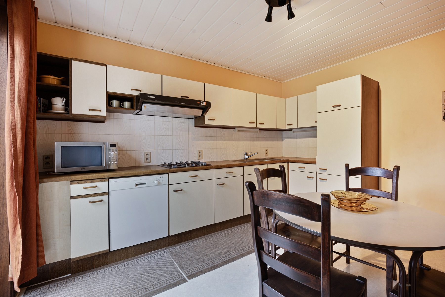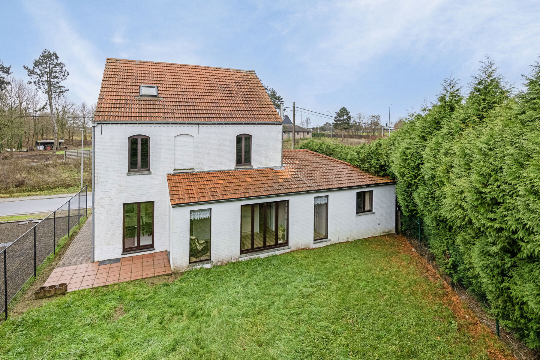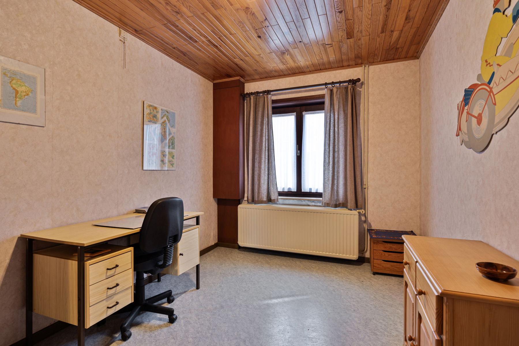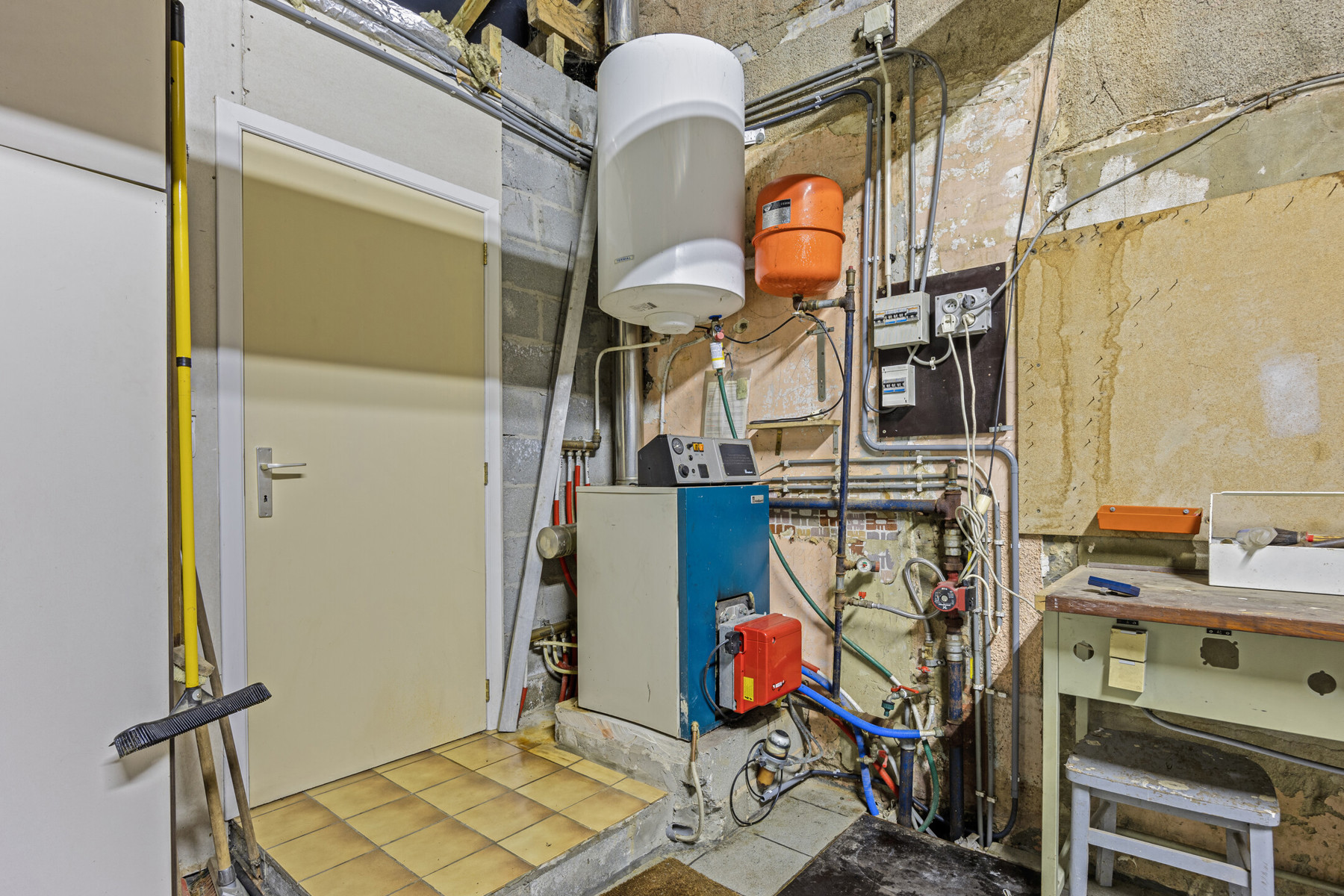 Gelijkvloers: inkomhal, leefruimte (ca. 24m²), slaapkamer of bureau (ca. 11m²), keuken (met recente vaatwasser dd 2018 en gasfornuis), badkamer (dd 2012 met toilet, ligbad en lavabo). De gezellige veranda biedt veel lichtinval en directe toegang tot het terras en de afgesloten tuin (3a 69ca). Aparte wasplaats/berging met lavabo en mogelijkheid tot tweede badkamer. Dubbele garage met technische ruimte +/- 40m2. Eerste verdieping: drie ruime slaapkamers (ca. 33m², 15m² en 13m²) in casco staat, klaar voor renovatie. Kelder: extra bergruimte.