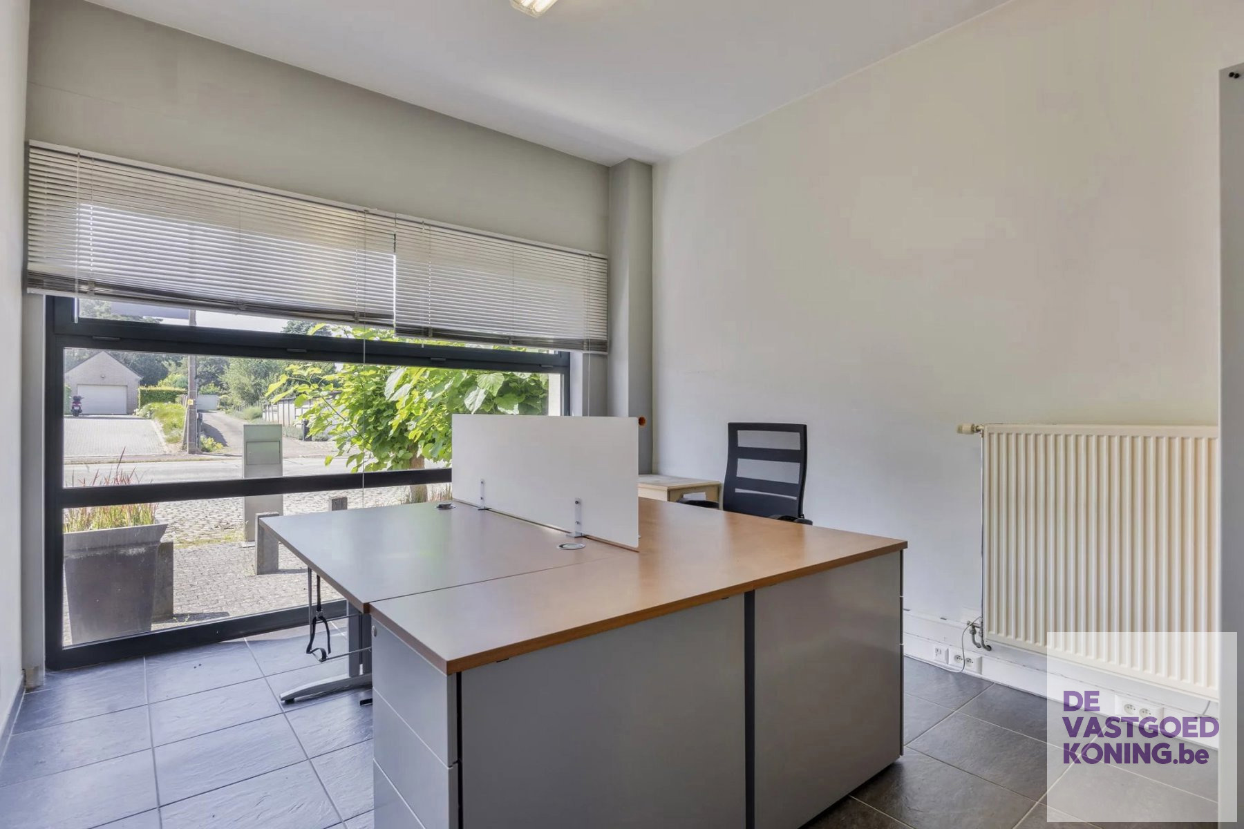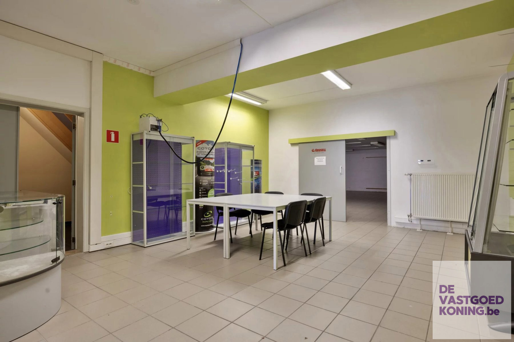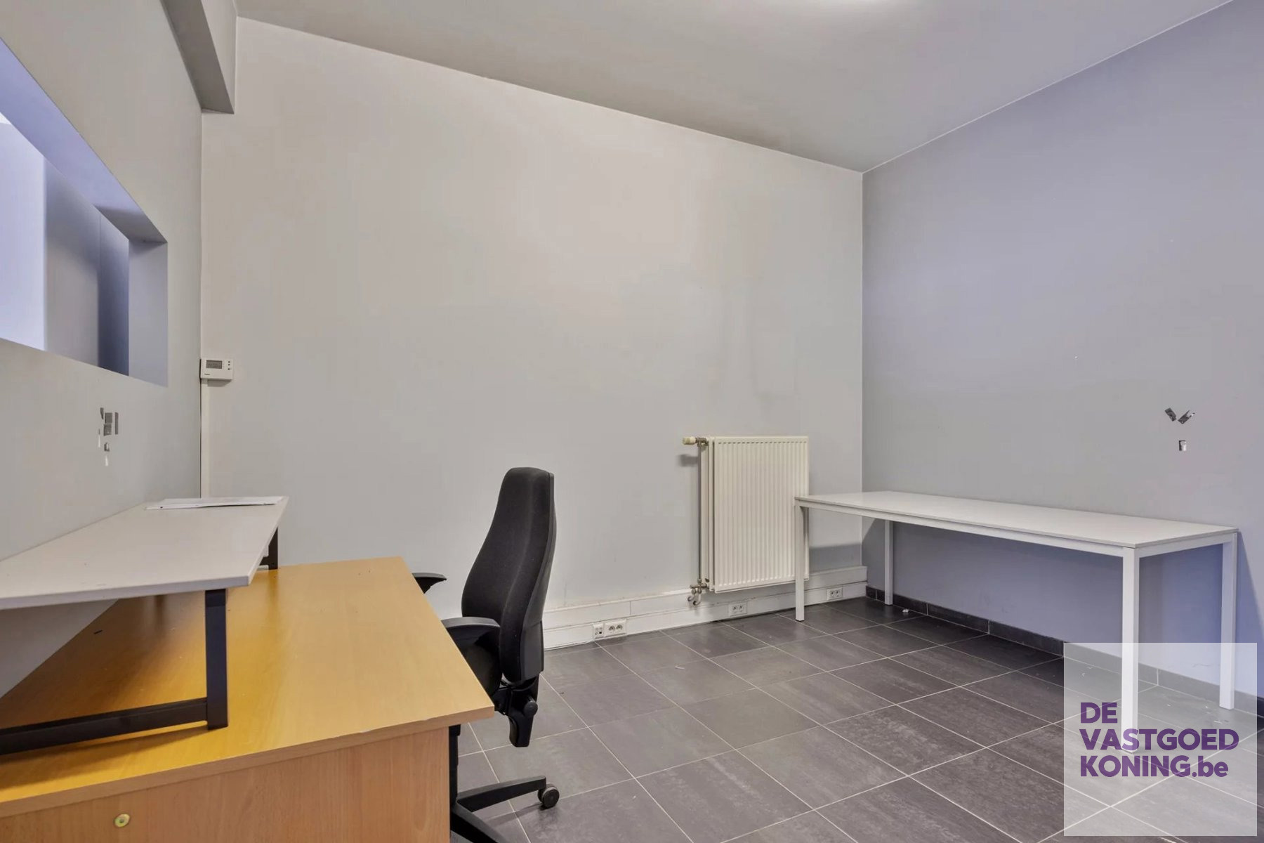 Gelijkvloers: Het gelijkvloers beschikt over 4 ruime kantoren, wachtzaal, toilet, berging en een garage – alles samen +/- 185m². Achteraan, bereikbaar via de garage, bevindt zich een groot magazijn of zaal van eveneens +/-185m², ideaal voor opslag of als grote winkelruimte. Parkeergelegenheid: Aan de voorzijde van het pand is er een ruime parkeerplaats voor 3-4 auto's, wat zorgt voor gemakkelijke toegang voor zowel bewoners als klanten.