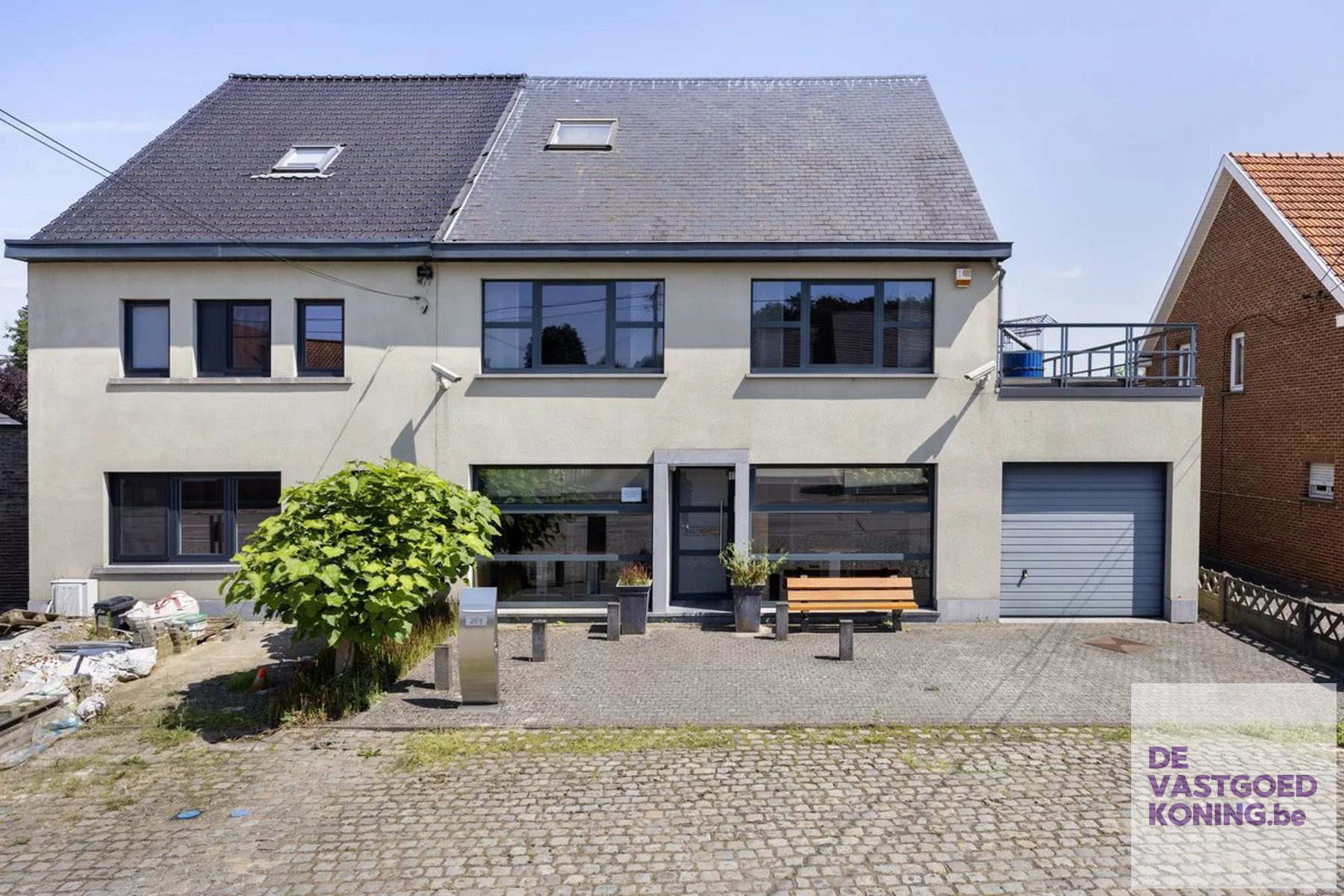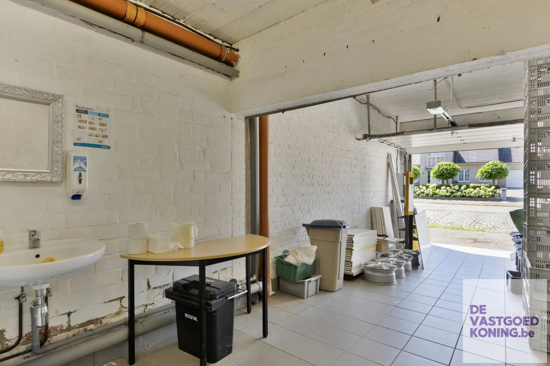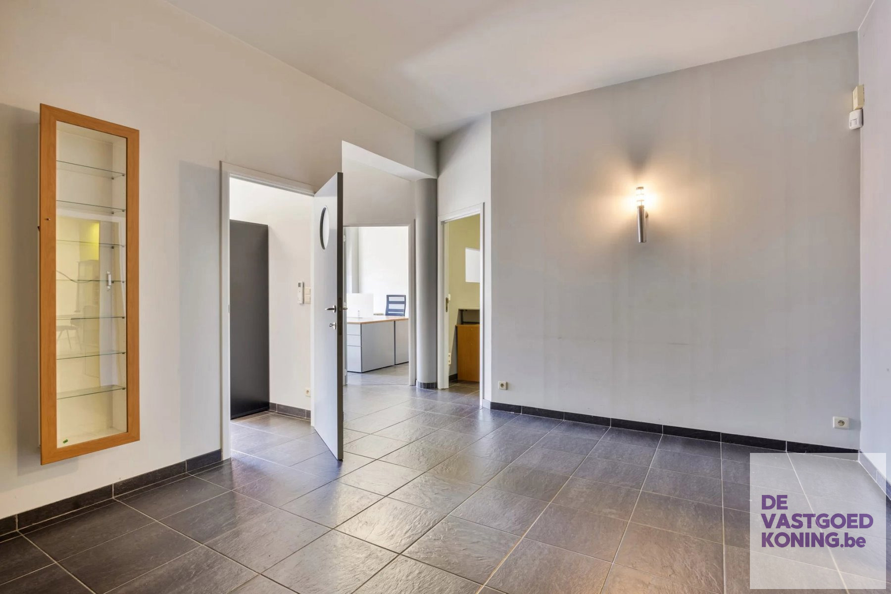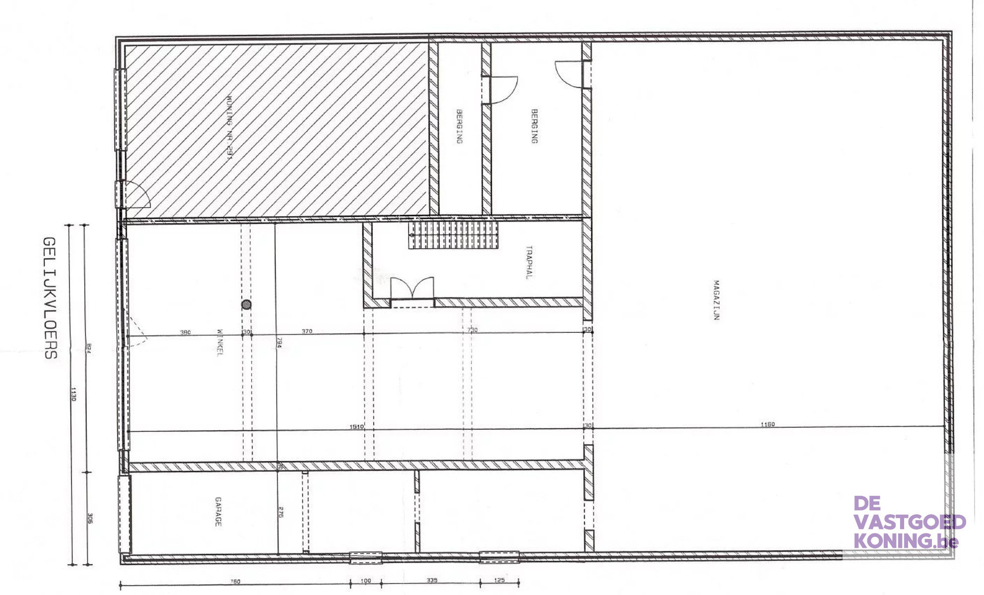 Gelijkvloers: Het gelijkvloers beschikt over 4 ruime kantoren, wachtzaal, toilet, berging en een garage – alles samen +/- 185m². Achteraan, bereikbaar via de garage, bevindt zich een groot magazijn of zaal van eveneens +/-185m², ideaal voor opslag of als grote winkelruimte. Parkeergelegenheid: Aan de voorzijde van het pand is er een ruime parkeerplaats voor 3-4 auto's, wat zorgt voor gemakkelijke toegang voor zowel bewoners als klanten.