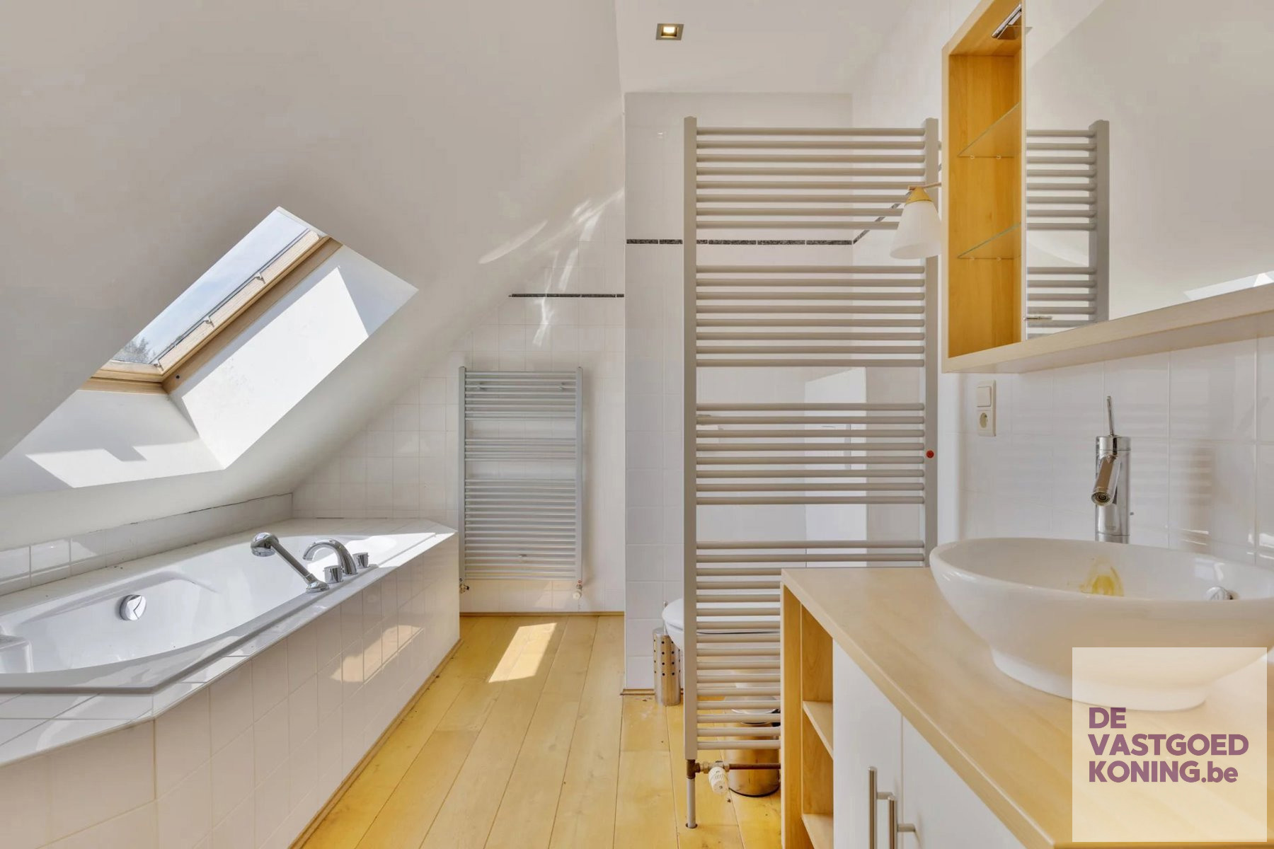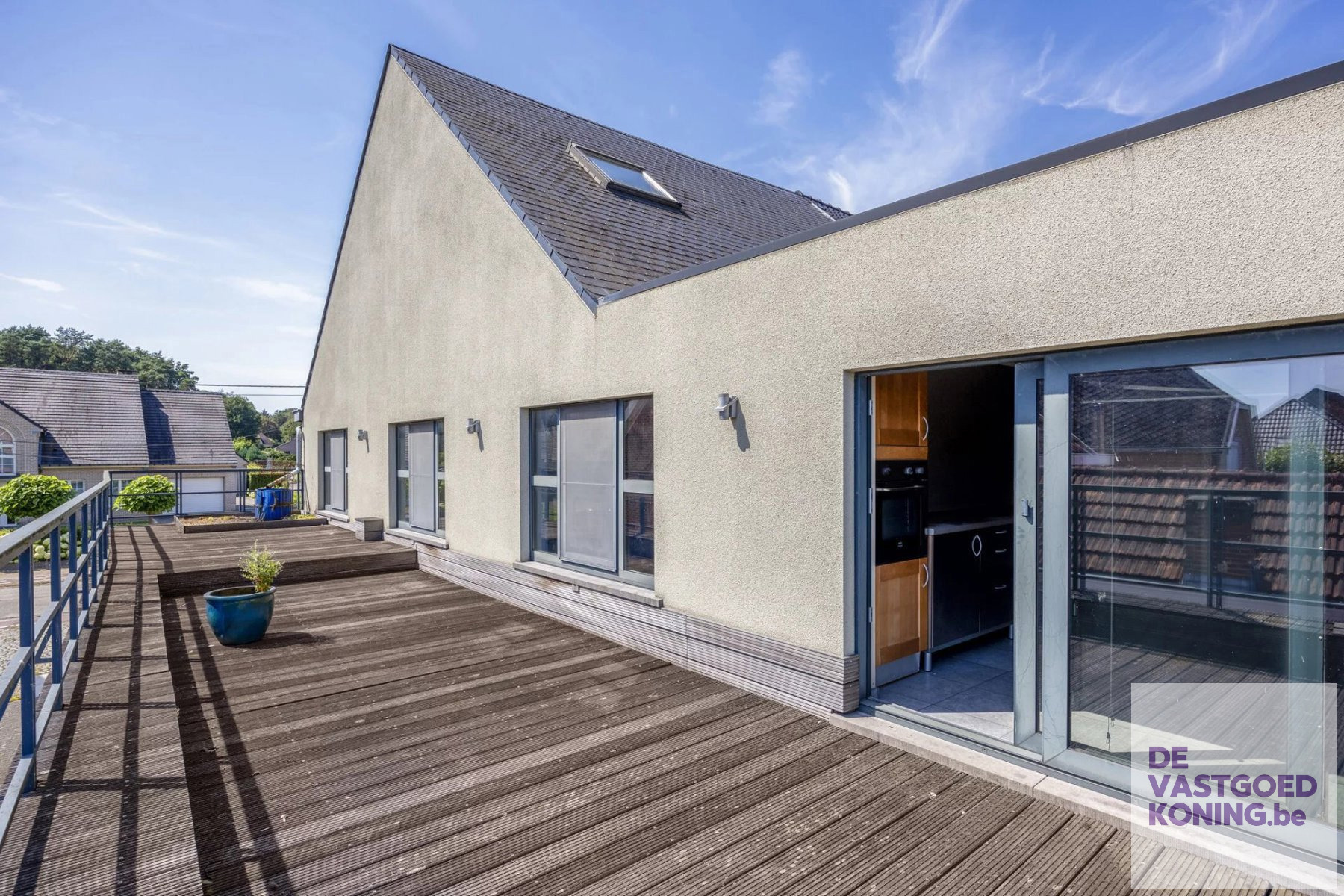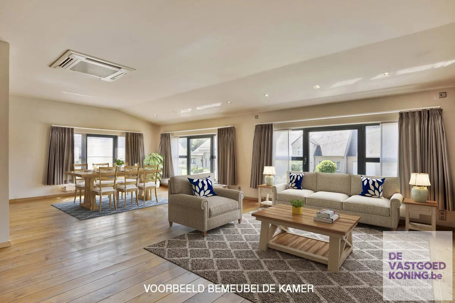 Duplex appartement: op de eerste verdieping bevindt zich een duplexappartement van ongeveer 184m², inclusief een groot terras van ongeveer 43m². Het appartement is voorzien van 3 slaapkamers, een badkamer met ligbad en douche, een apart toilet, een woonkamer en een volledig uitgeruste keuken met vitrokeramische kookplaat, oven en vaatwasser. Daarnaast is er een berging die eventueel kan worden omgebouwd tot een tweede doucheruimte. Het appartement is mooi afgewerkt met massief parketvloeren.