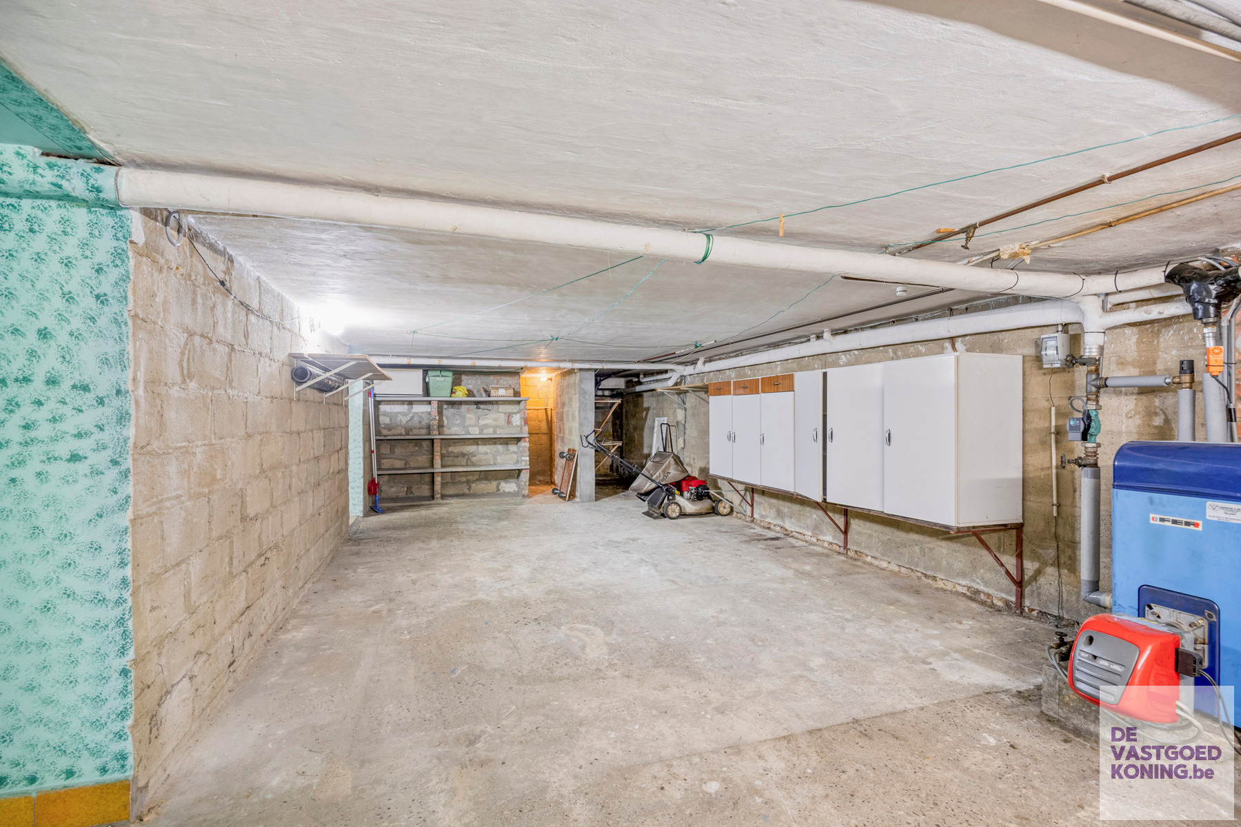 Kelderverdieping: de woning is bovendien volledig onderkelderd met garage en veel bergruimte – perfect voor wie nood heeft aan extra opslag of hobbyruimte. Achteraan bevinden zich twee kleine bergruimtes en een grote werkplaats.