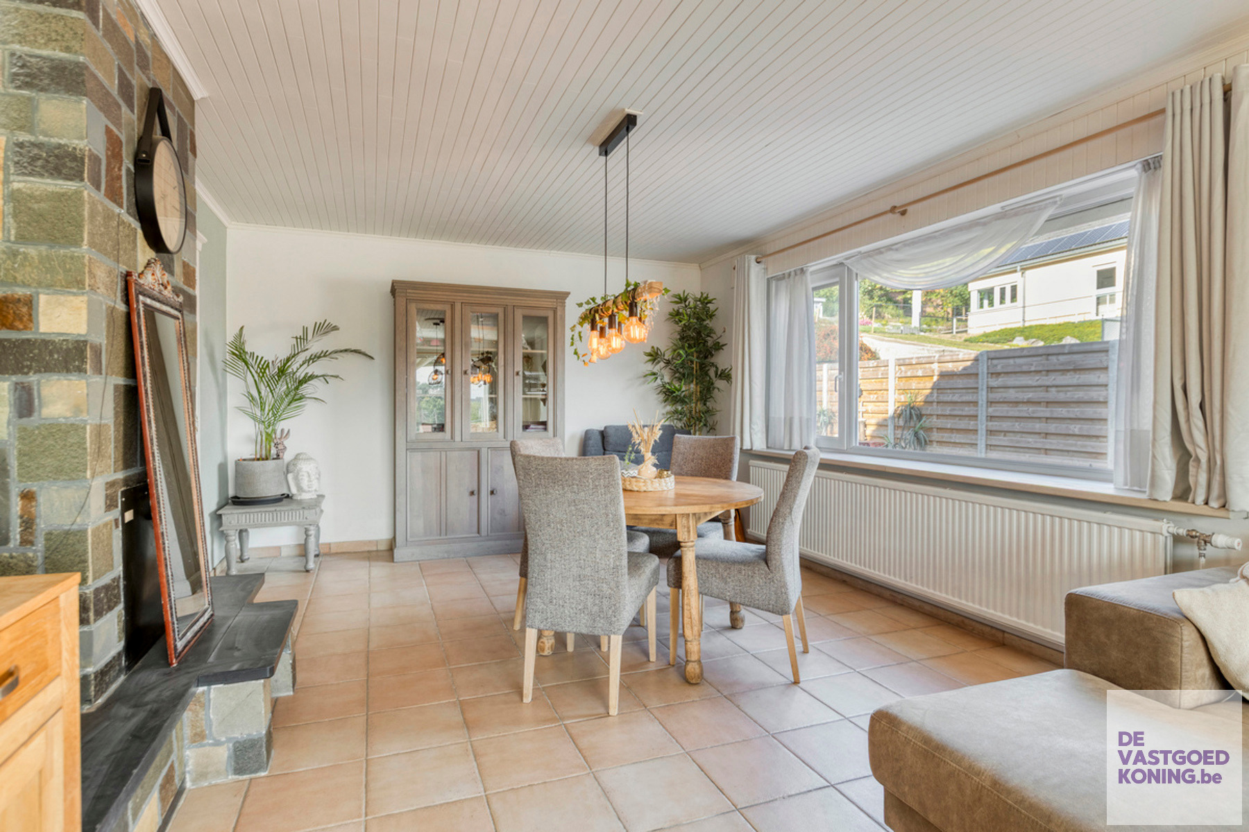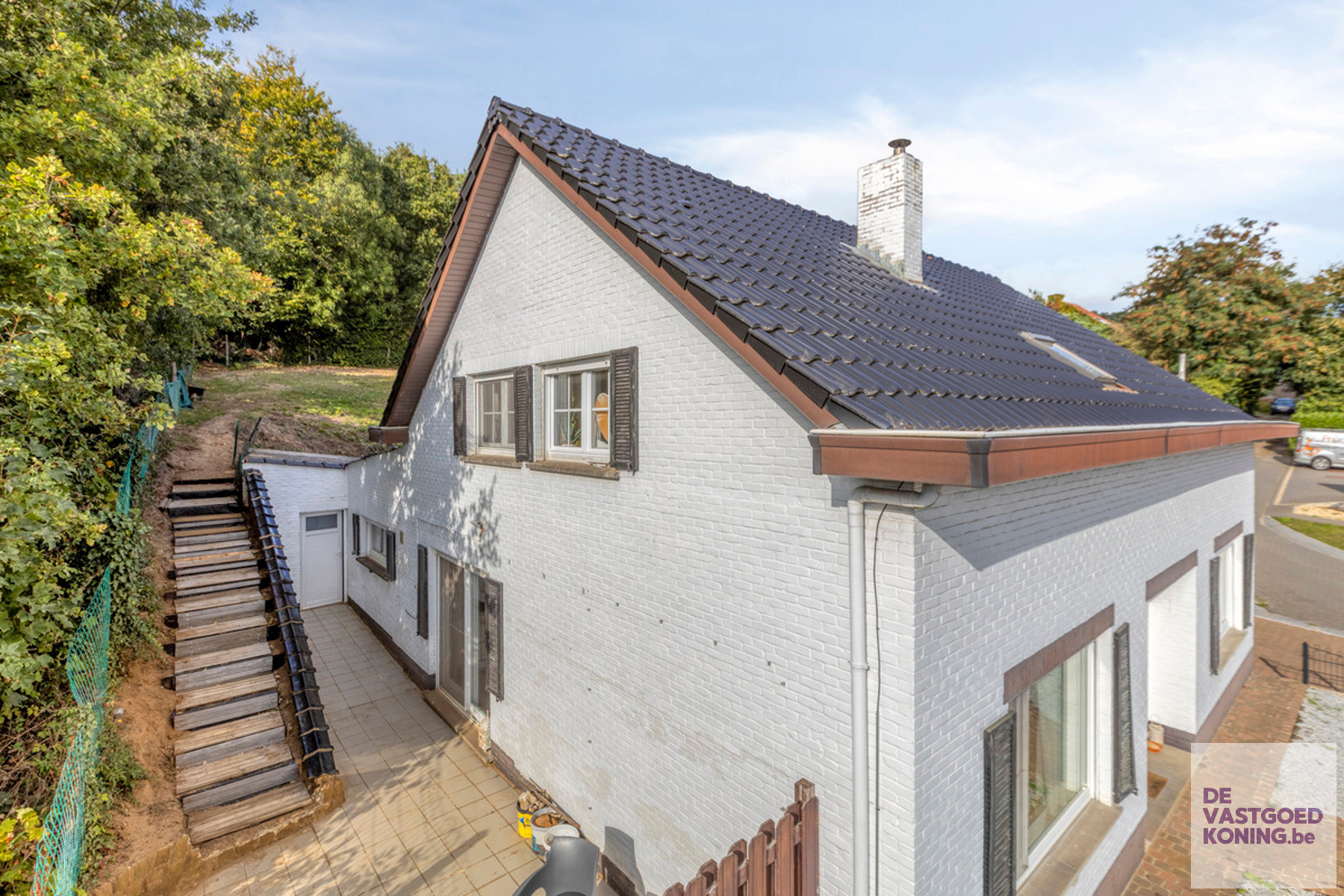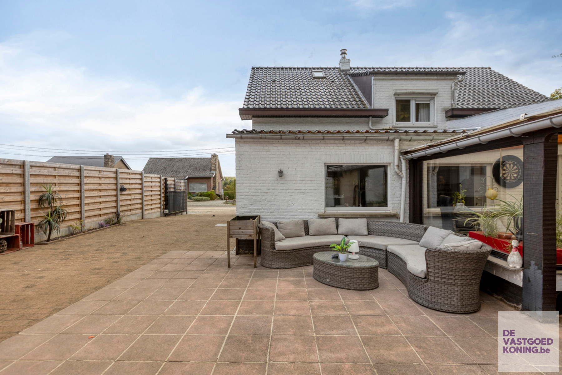 Buitenruimte: tuin met terras achteraan het huis en toegang tot werkplaats en grote vrijstaande opslagplaats/garage. Via het terras aan de zijkant bereik je de tuin/groene weide, gelegen op een hoger niveau en met prachtig uitzicht over de Demervallei. Oprit afgewerkt met klikers, de tuin is volledig afgesloten (handig voor uw huisdieren).